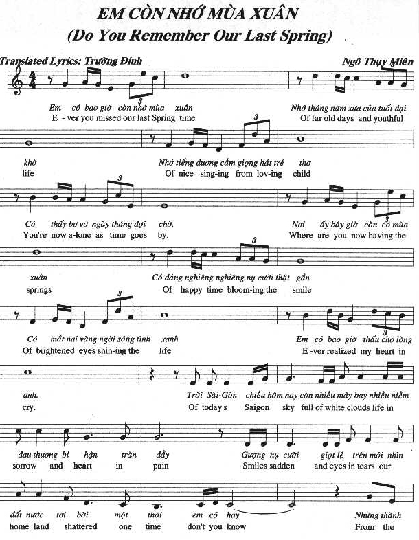 Thời gian qua mau, bây giờ, đã hơn 20 năm nơi đây, nhiều mùa Xuân đã lặng lẽ qua đi. Những mùa Xuân tưởng chừng như tươi đẹp hơn, nhưng không bao giờ có lại được một mùa Xuân trọn vẹn của những ngày tháng cũ! Chúng ta đã trải qua bao nhiêu khó khăn, cố gắng xây dựng một cuộc sống mới, đầy đủ nơi xứ lạ quê người. Nhưng sao trong anh, vẫn trống vắng, vẫn khắc khoải, mong chờ